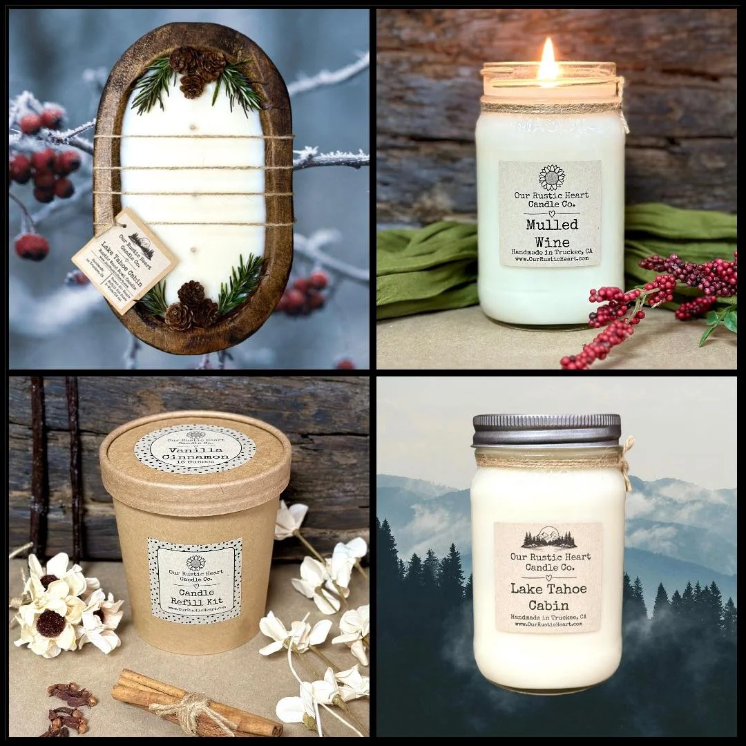 Welcome to Our Rustic Heart Candle Co. in Truckee! We’re a family business and makers of handcrafted, non-toxic, eco-friendly & REFILLABLE candles! Take a peak below for an overview of all of our handmade & sustainable products. To skip and jump to the shop - click the button!