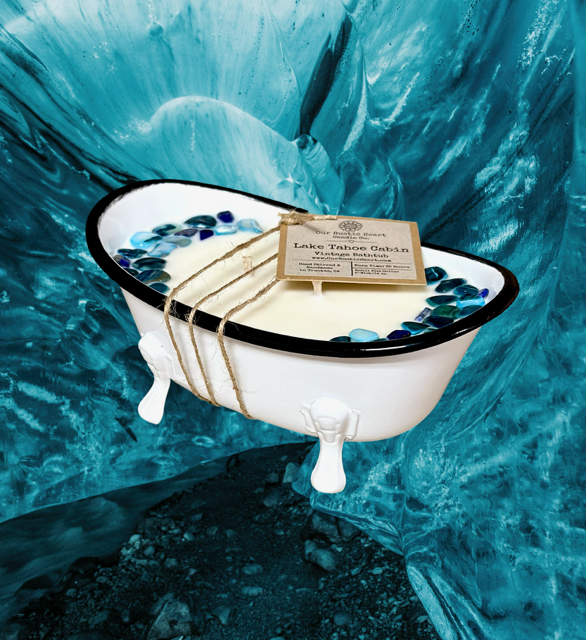 Our charming Tahoe Vintage Bathtub Candle add a charming and rustic cabin aesthetic to your washroom & tidy up spaces!