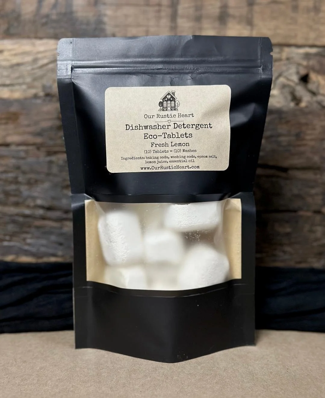 Our plastic-free, eco-friendly & natural Fresh Lemon Dishwasher Detergent Tablets have all of the power to clean without any of the harsh chemicals and residues!