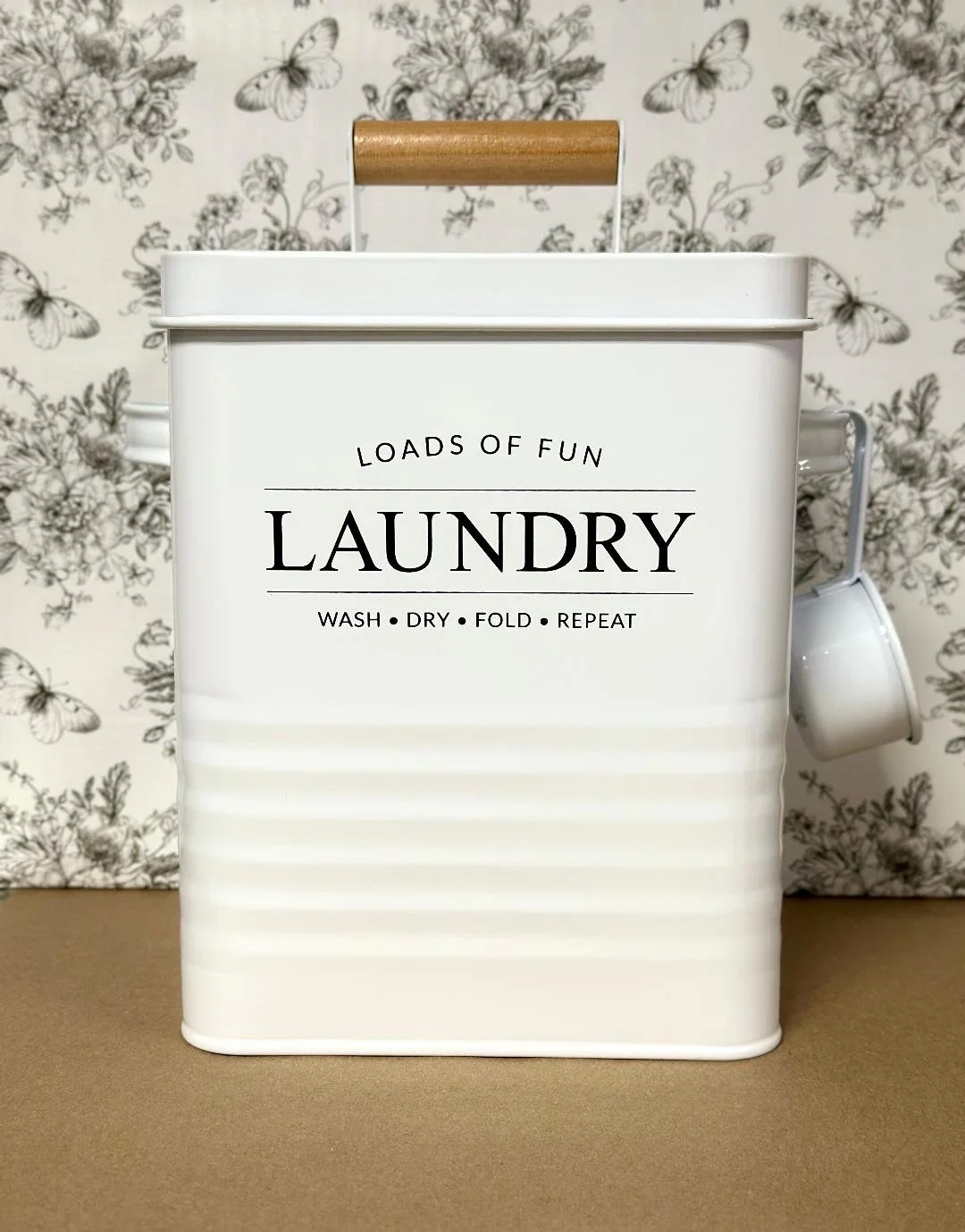 Our white modern farmhouse Laundry Detergent Containers add a charming aesthetic for any laundry room!